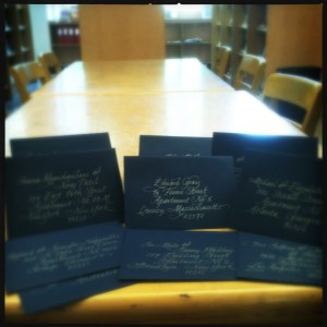 My clients from Boston will be marrying in the Boston Public Library ♥swoon♥. Their escort cards will be vintage check/out return cards.